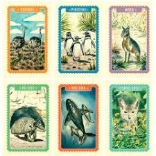 En cada carta vas a encontrar una obra de arte en miniatura: maras, choiques, ballenas, pingüinos, zorros grises y peludos.